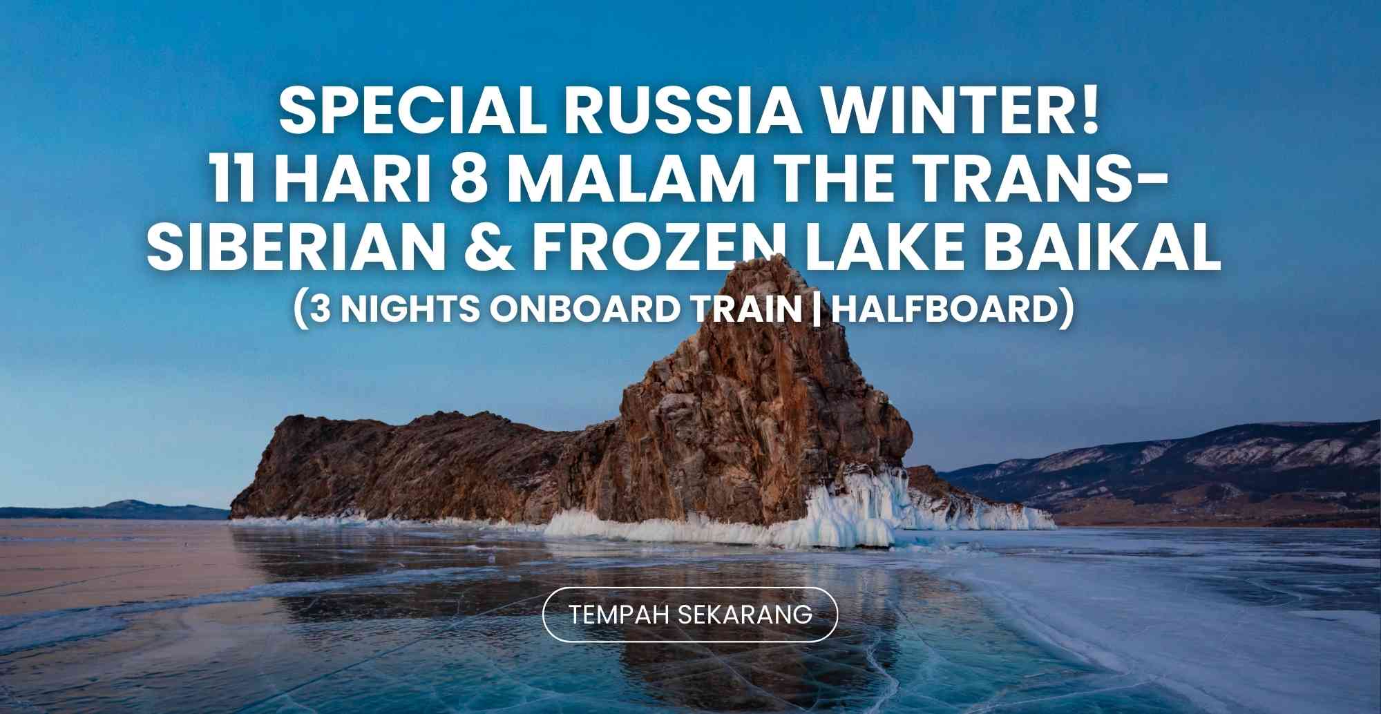 Nikmati pengalaman unik menjelajah Rusia pada musim sejuk melalui laluan ikonik Trans-Siberian Railway, dari Vladivostok hingga ke Irkutsk. Perjalanan ini merangkumi tiga malam bermalam di dalam tren sambil menyaksikan pemandangan salji yang menakjubkan dan keindahan desa Rusia. Lawatan diteruskan ke Khabarovsk, Listvyanka Village dan Olkhon Island untuk menikmati keajaiban ais beku di Lake Baikal — tasik air tawar terbesar dan terdalam di dunia. Gabungan perjalanan kereta api klasik dan keindahan alam Siberia ini menjanjikan pengalaman musim sejuk yang menakjubkan dan penuh kenangan.
